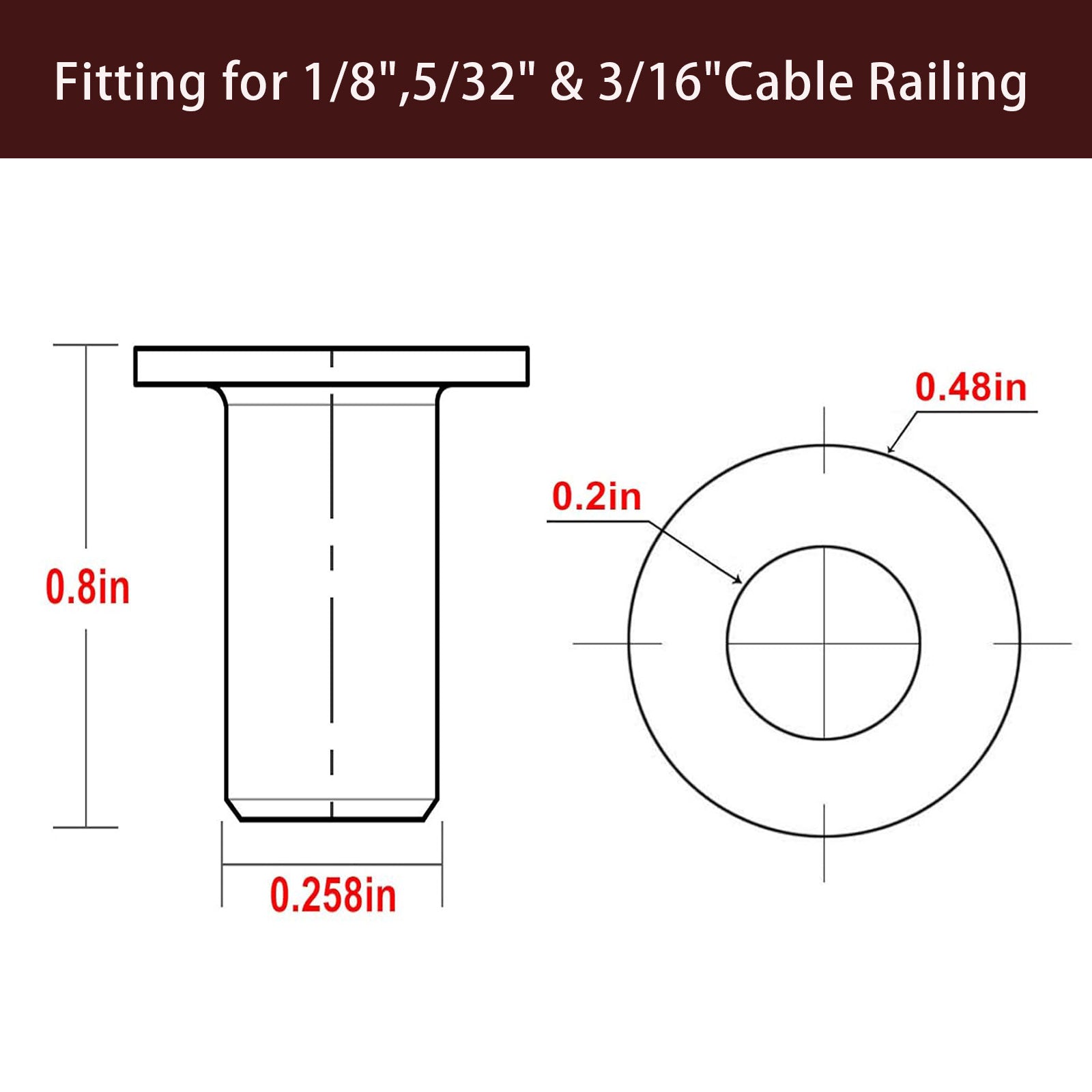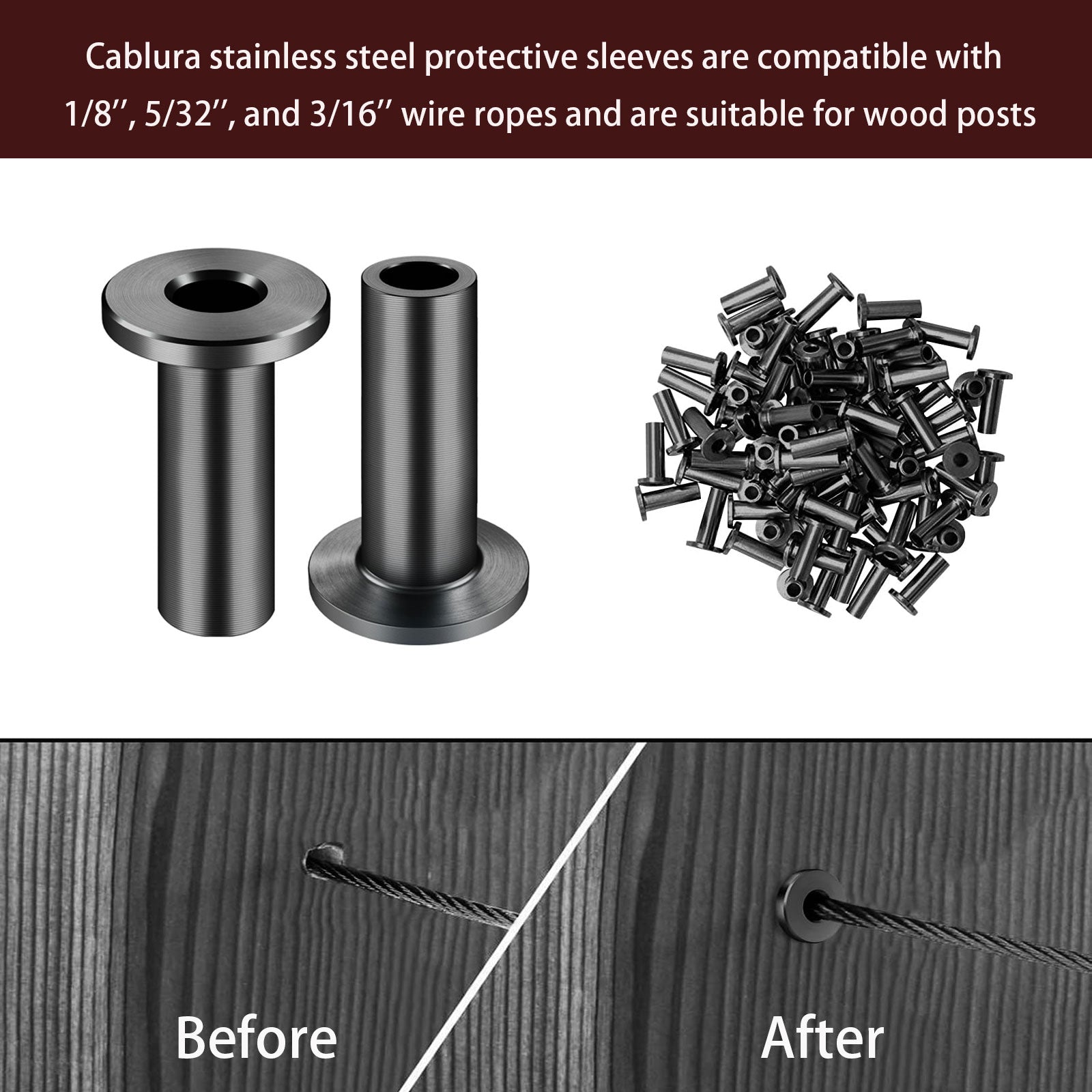 Cablura T316 Black Stainless Steel Protector Sleeves for 1/8" Wire Rope Cable Railing