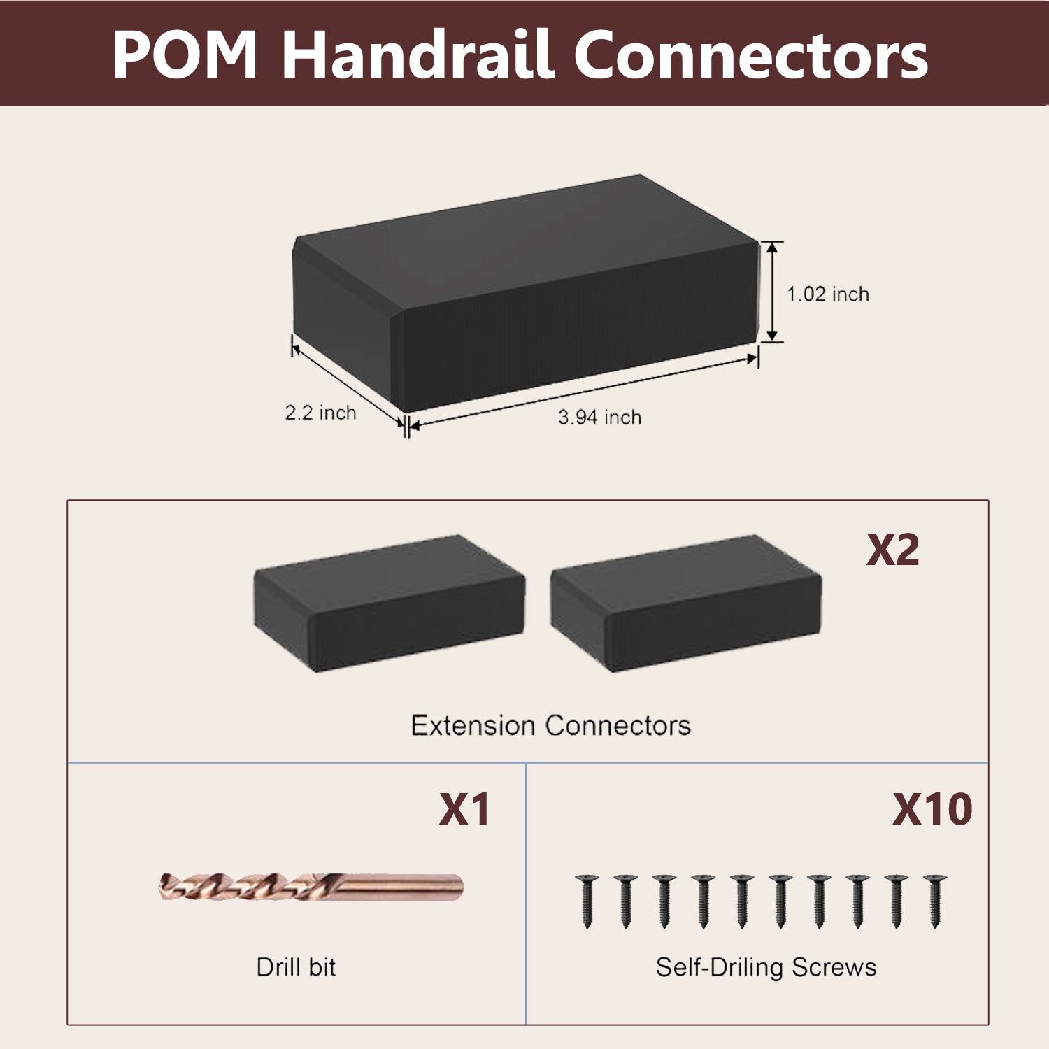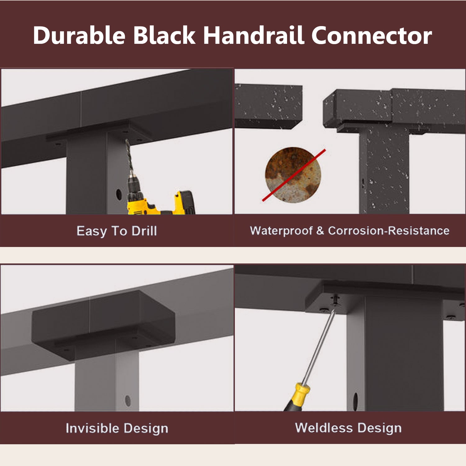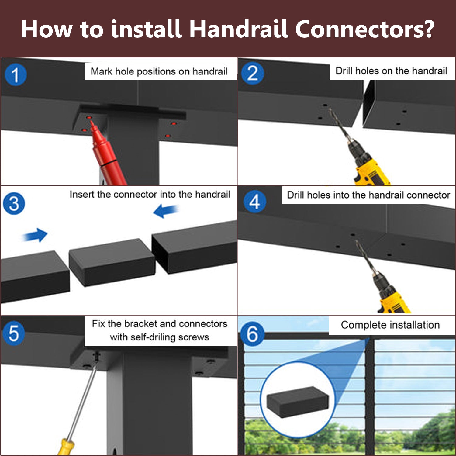 No welding required. Simply insert the connector into the handrail, drill pilot holes, and secure with screws. The connector length is designed to facilitate easy drilling without the risk of cracking edges, making the installation process quick and hassle-free.
