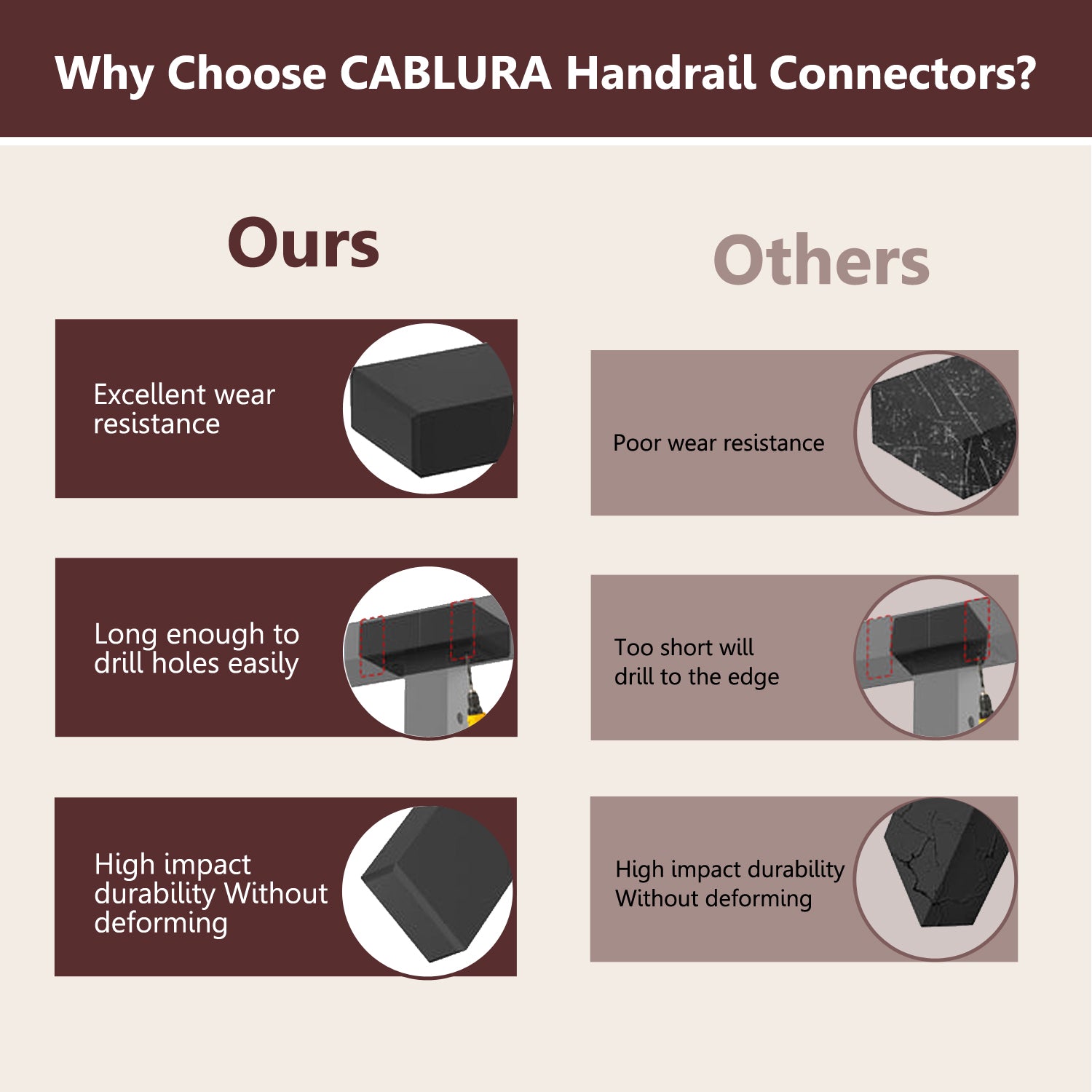 Made from high-strength POM material, these extension connectors offer excellent weather resistance, compression resistance, and wear resistance. Whether used indoors or outdoors with Cablura CA105-L handrails, they provide long-lasting stability and safety for your railing system.