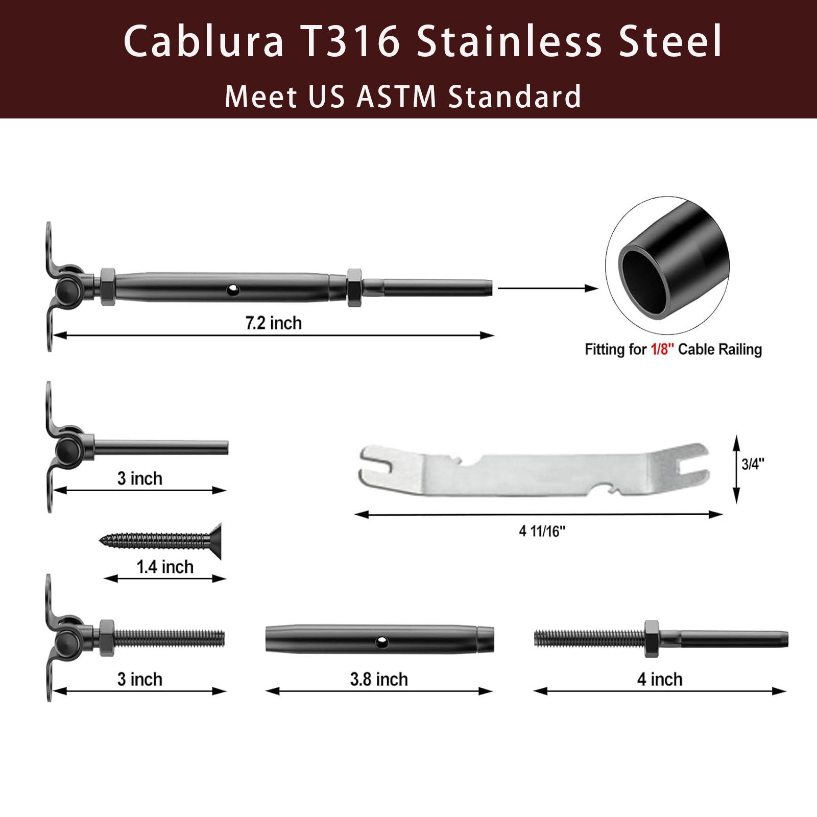 Crafted from high-quality T316 stainless steel, these black cable railing hardware pieces are built to last without worrying about rusting over time. The durable material makes them ideal for both indoor and outdoor applications. The cable railing tensioner kit is also compatible with wood posts for added flexibility.