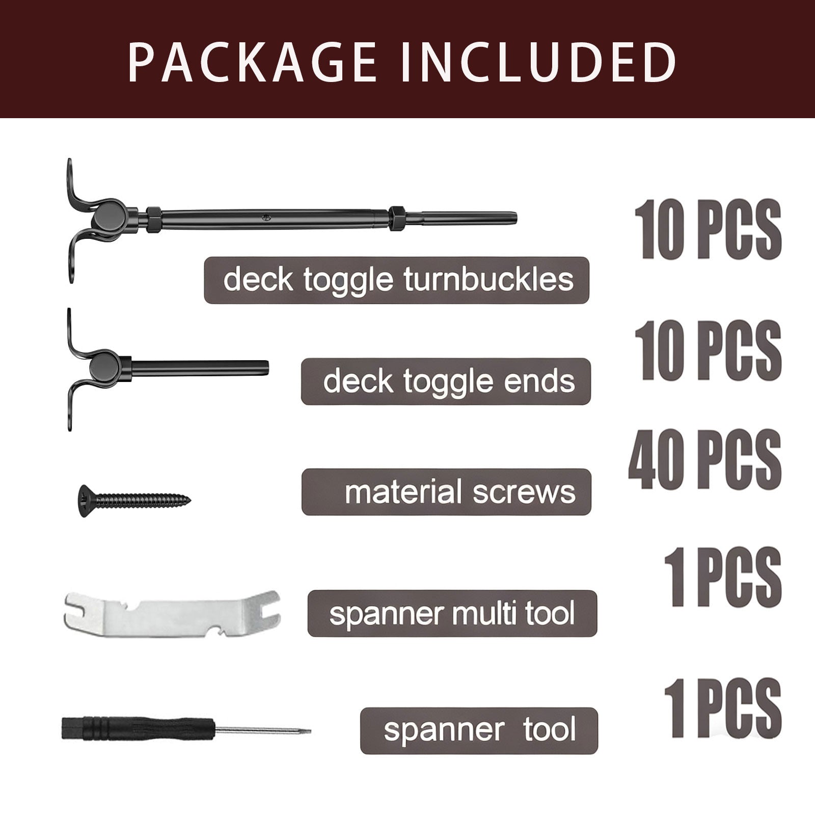 10 Pairs of T316 Black Stainless Steel Toggle Turnbuckles & Ends (available in 20 pairs and 30 pairs options)