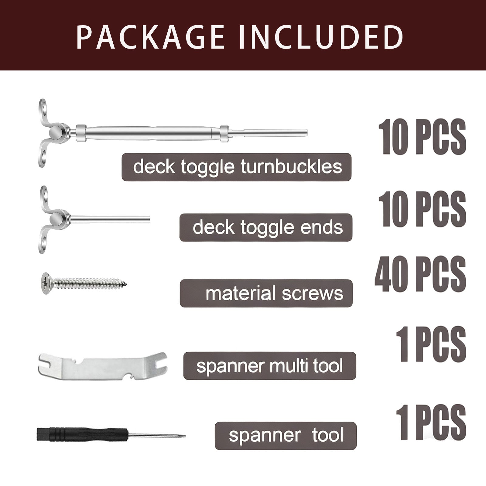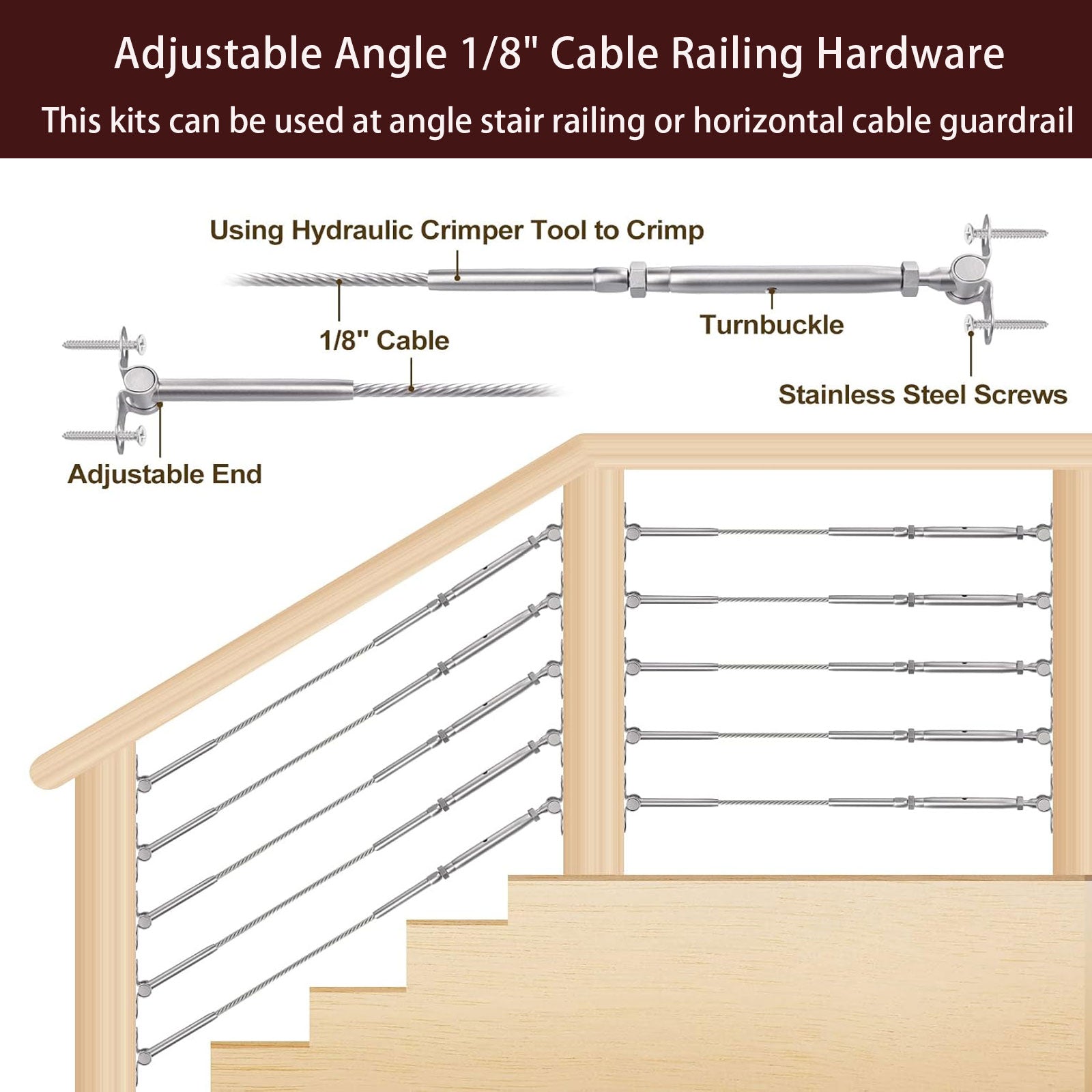 Cablura 1/8" Cable Railing Kit with Swage Toggle Turnbuckle, T316 Stainless Steel for Wood Posts