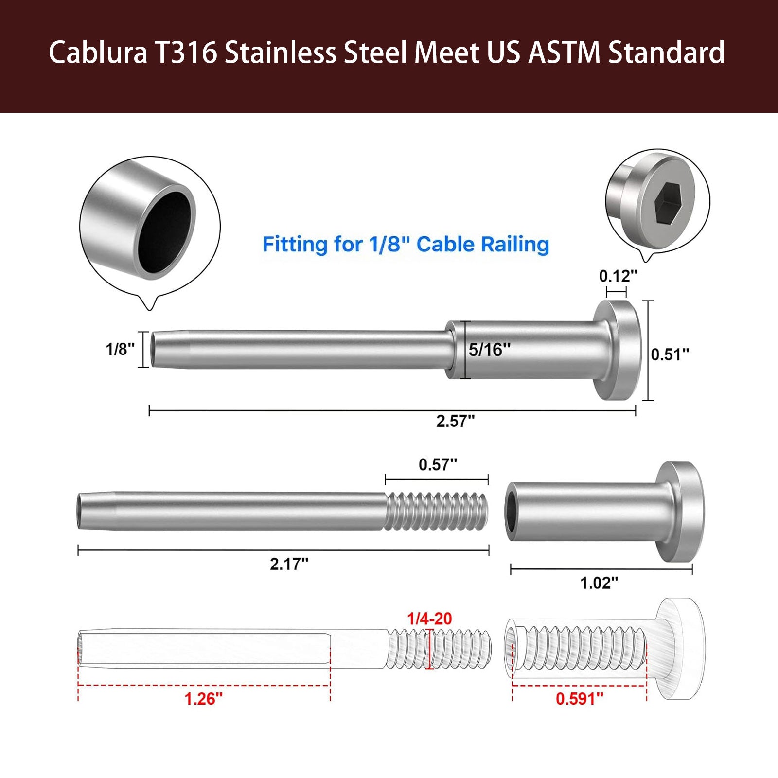 Works seamlessly with Cablura CA240 hydraulic crimper tool and other 1/8" cable railing accessories.